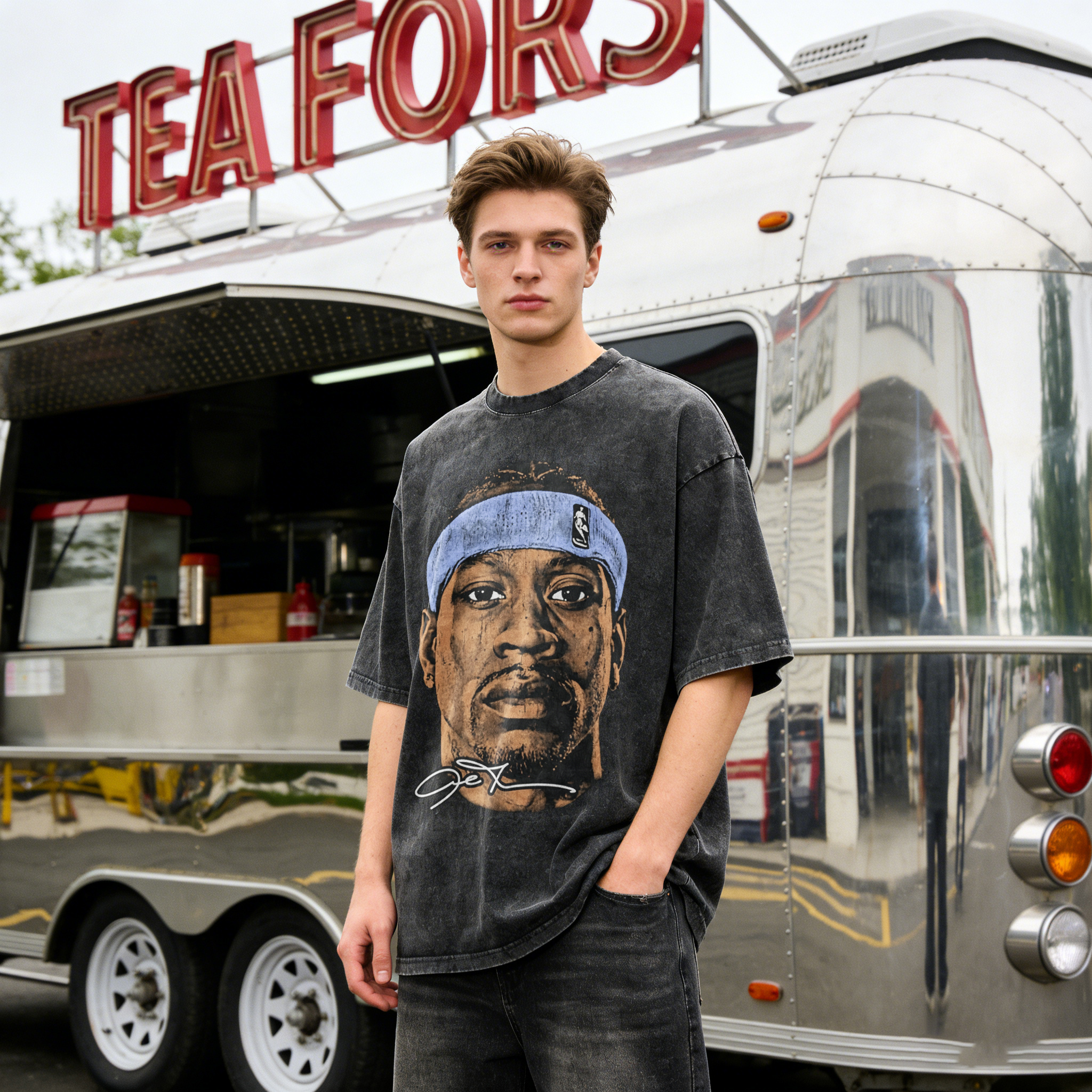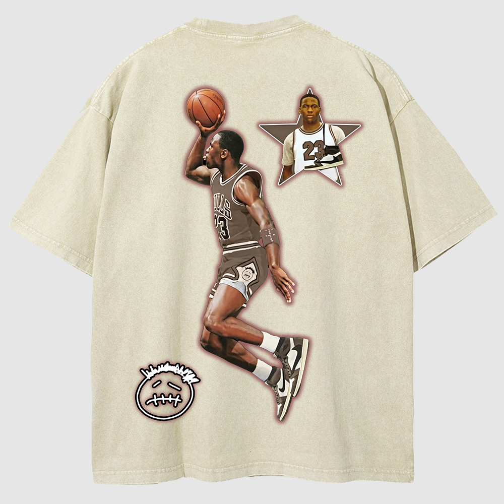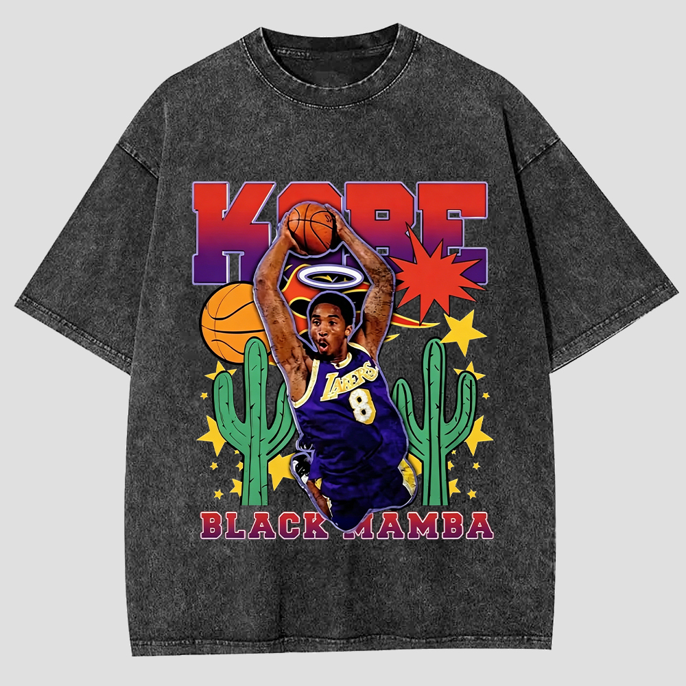 KOBE & MJ & MAGIC & LEBRON Printed Men's Washed Tee