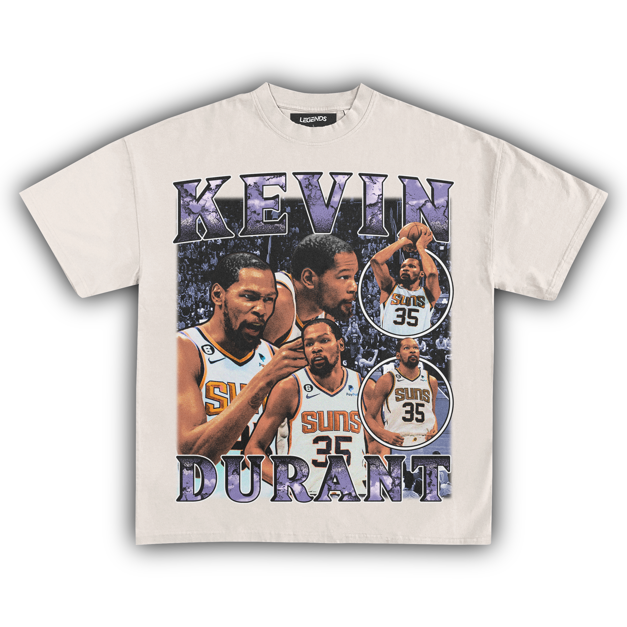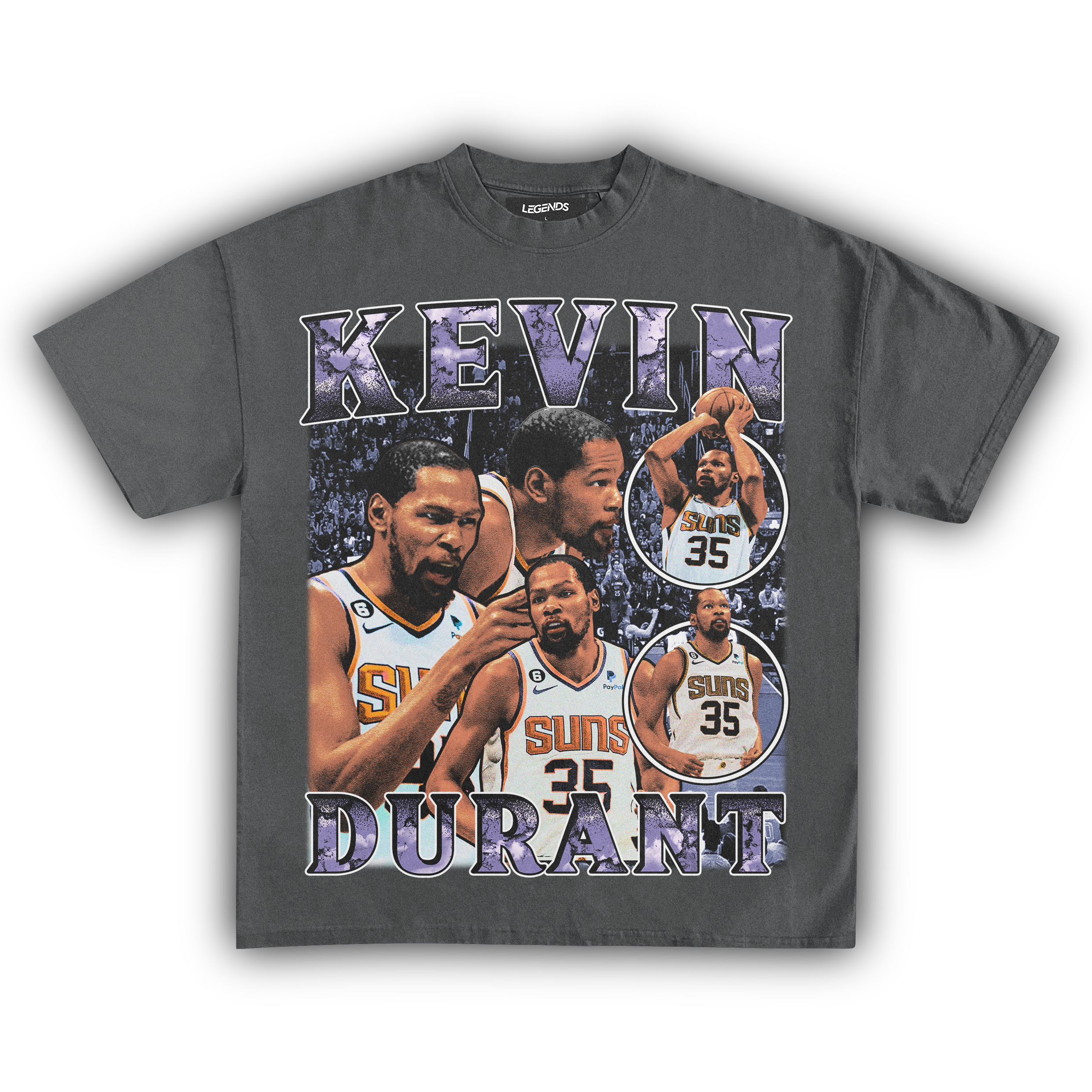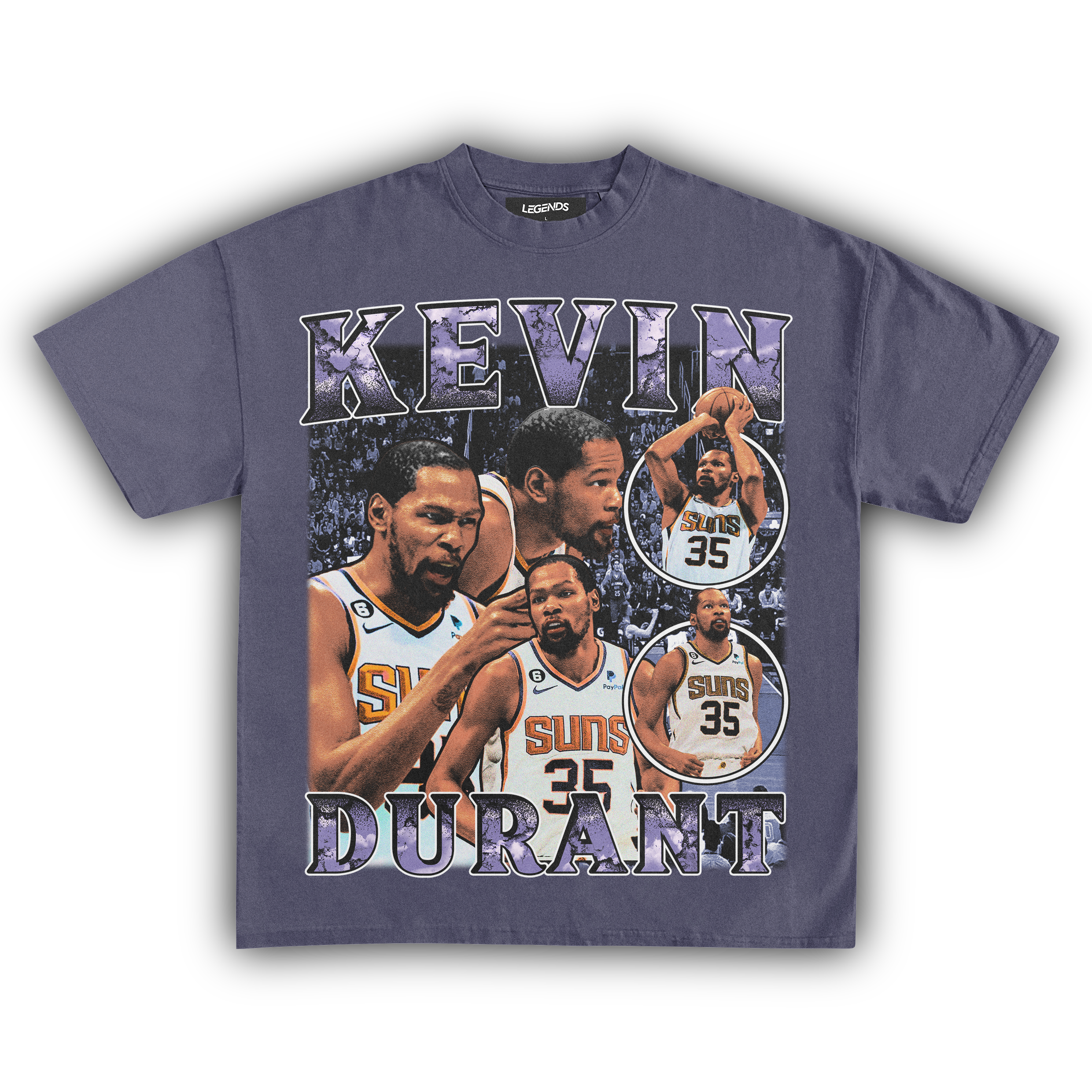 Step into the spotlight with this fresh tee. reppin' KD's greatness and his championship swagger. From the Warriors to the Nets. KD's journey has been legendary. but now we're bringing it home to the Suns. Picture this – KD rockin' the purple and orange. ballin' out and bringing that championship energy to Phoenix.