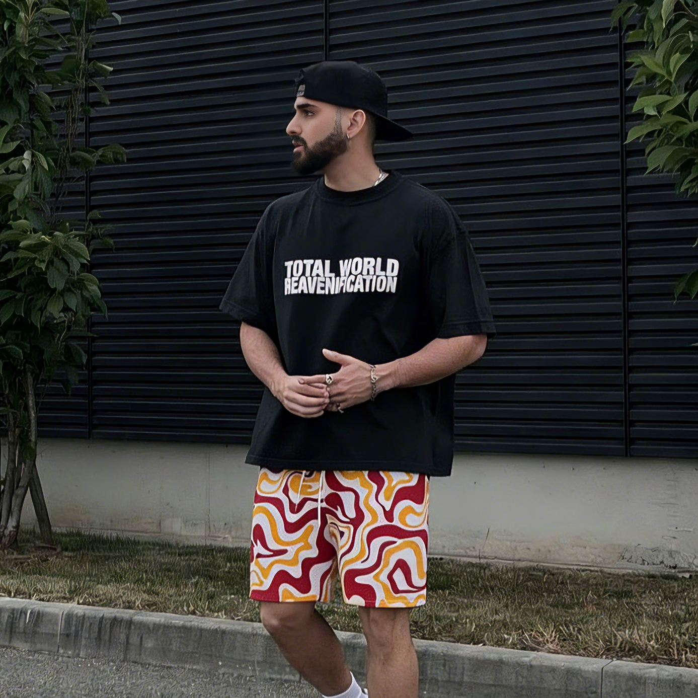 Psychedelic Red-Orange Wave Athletic Shorts