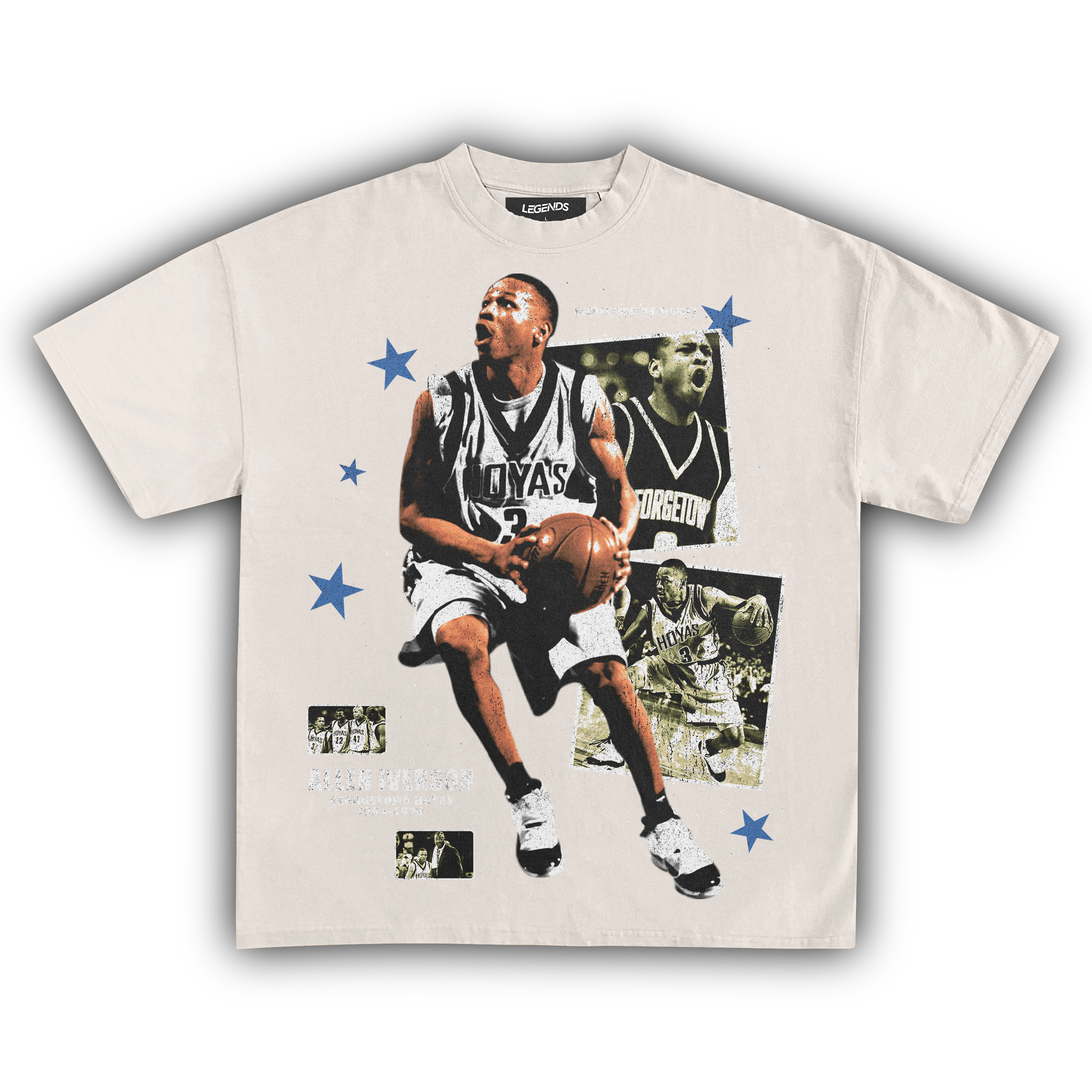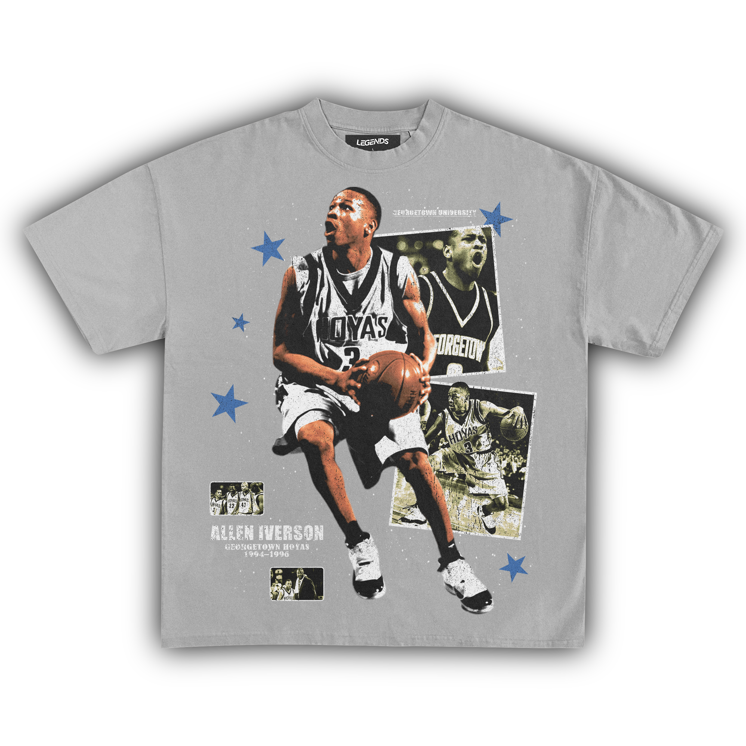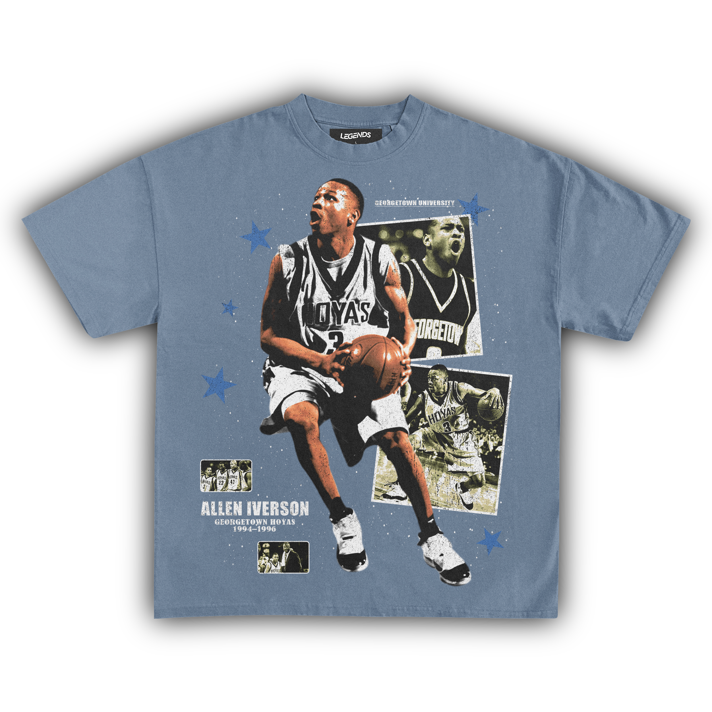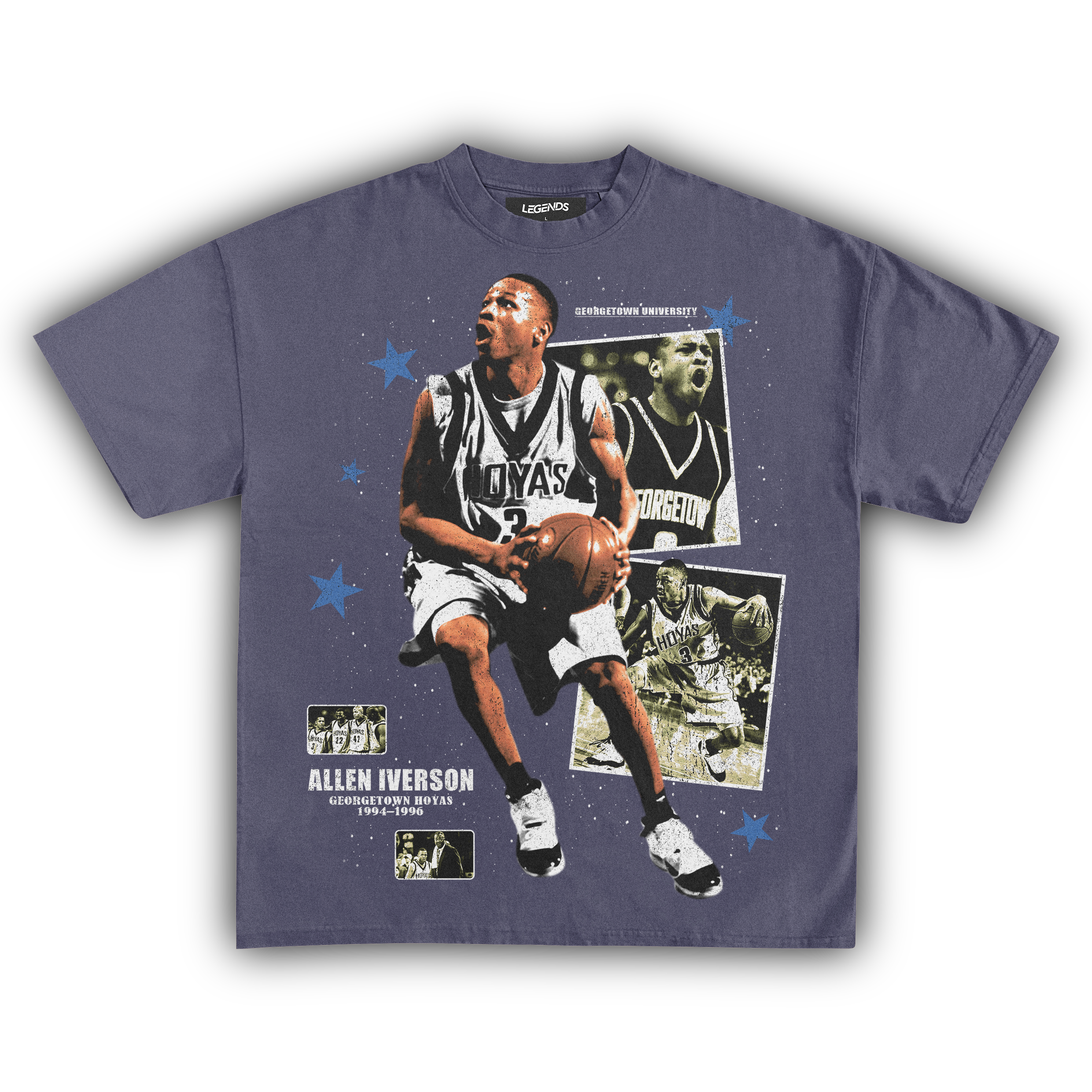 🏀 Crossover King: Allen Iverson Georgetown Hoyas: Hit the streets with the swagger of a legend in our Allen Iverson Georgetown Hoyas Tee. This isn't just a throwback; it's a tribute to A.I.'s raw. game-changing days at Georgetown. where he left defenders on skates and stole hearts with his unstoppable crossover. Crafted from heavyweight. garment-dyed fabric. this tee packs the durability to last through any hustle. while the high-quality DTG printed graphic captures Iverson's fierce gaze and iconic Georgetown uniform. Every stitch screams authenticity. letting you carry a piece of basketball history with every wear. For the real heads who know their hoops history. this tee isn't just gear—it's a testament to the roots of a streetball legend.